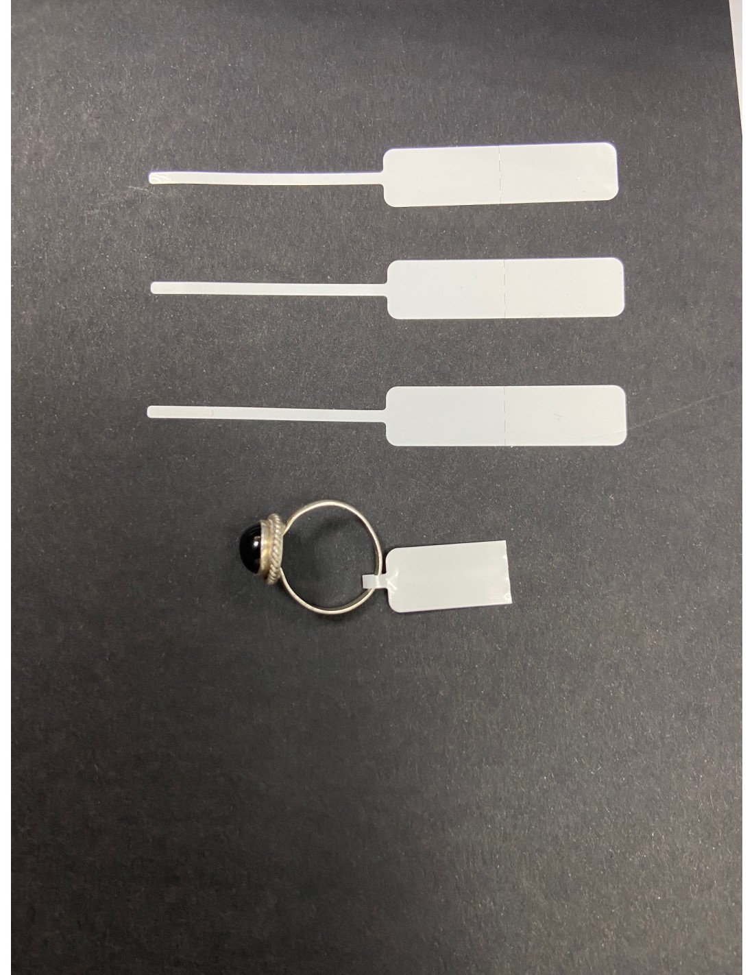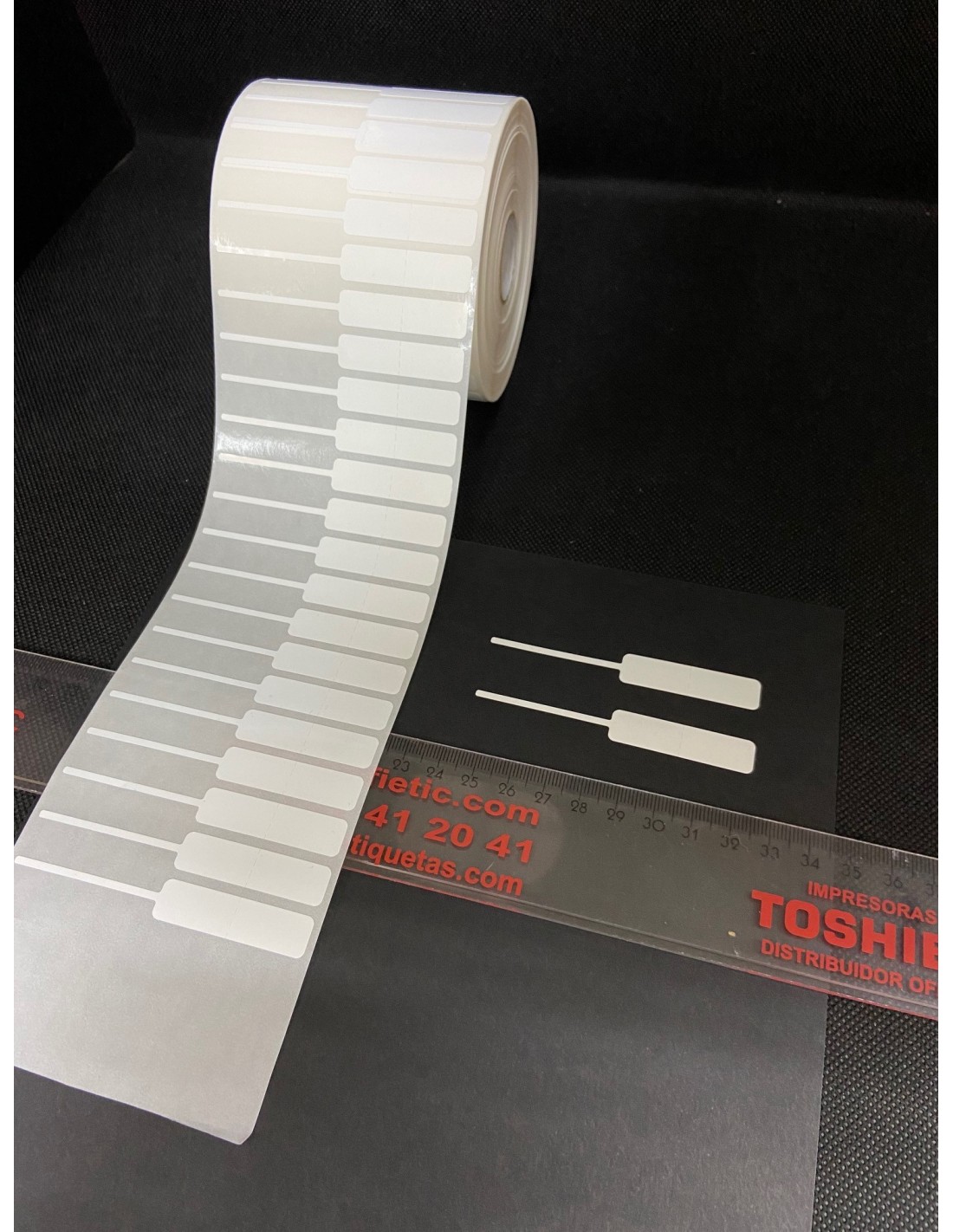 Etiquetas adhesivas para JOYERIA, rollo 4.000 etiq. - 80 x 10 mm con RESERVA DE ADHESIVO