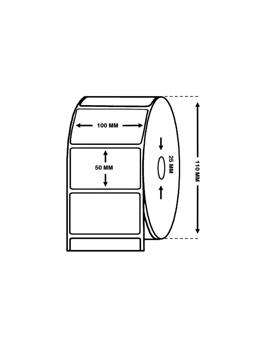 Rollo de 1.410 etiquetas trepadas papel térmico tratado 100 x 50 mm