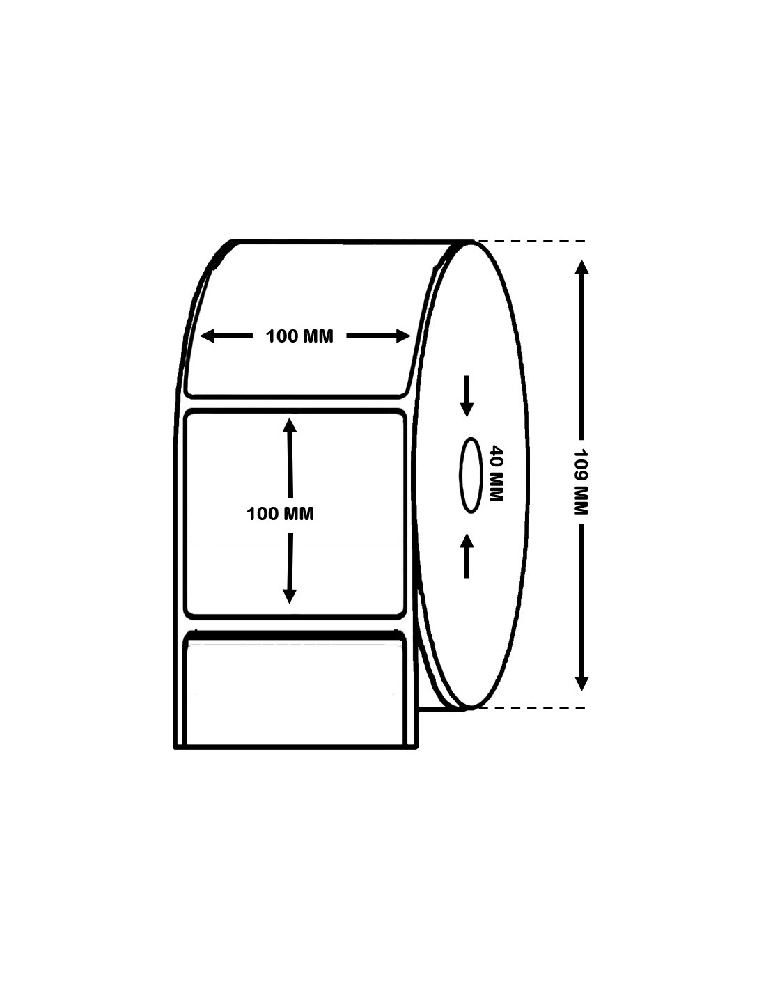 Rollo de 600 etiquetas trepadas papel térmico tratado 100 x 100 mm