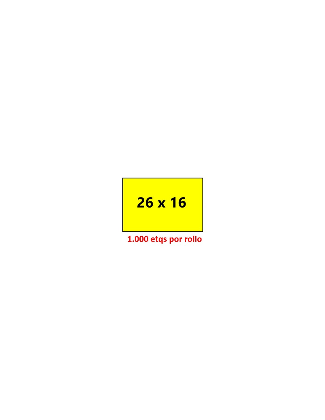 26 X 16 Rectangular. FLUOR AMARILLO. Adhesivo PERMANENTE. Estuche 40 rollos